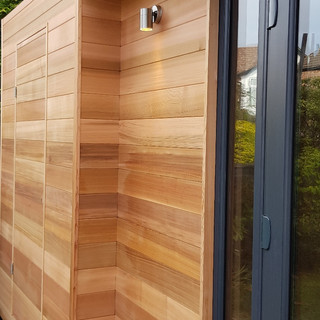 The rear elevation of the studio was up against the boundary fence and the customer chose to have a lapwing wood finish which helps manage the budget as well as providing the required finish and weatherproofing.